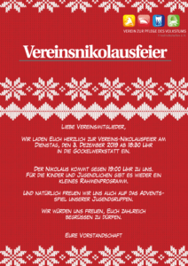 « Alle Veranstaltungen Diese Veranstaltung hat bereits stattgefunden. Vereinsnikolausfeier 3. Dezember 2019 @ 18:30 « Vereinsnikolausfeier Jahreshauptversammlung » Zum Kalender hinzufügen Google Kalender iCalendar Outlook 365 Outlook Live Details Datum: 3. Dezember 2019 Zeit: 18:30 Veranstaltungskategorie: Hauptverein Veranstaltungsort Vereinsheim „Gockelwerkstatt“ Industrieweg 4 Friedrichshafen, 88045 Deutschland Google Karte anzeigen